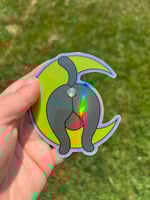These stickers are made with premium, holographic vinyl with a permanent adhesive and glossy finish. They are coated with a protective laminate that makes them resistant to fading, scratching, tearing, and water.